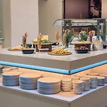 El desayuno de cocinado completo incluía panes y embutido, pero no tuvimos tiempo y no lo probamos todo. El proceso de registro era rápido.